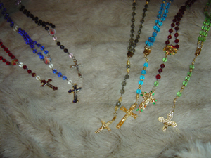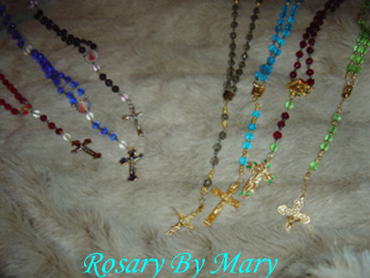 "Say the Rosary every day... Pray, pray a lot and offer sacrifices for sinners... I'm Our Lady of the Rosary. Only I will be able to help you. ...In the end My Immaculate Heart will triumph." Our Lady at Fatima The word Rosary means "Crown of Roses". Our Lady has revealed to several people that each time they say a Hail Mary they are giving her a beautiful rose and that each complete Rosary makes her a crown of roses. The rose is the queen of flowers, and so the Rosary is the rose of all devotions and it is therefore the most important one. The Holy Rosary is considered a perfect prayer because within it lies the awesome story of our salvation. With the Rosary in fact we meditate the mysteries of joy, of sorrow and the glory of Jesus and Mary. It's a simple prayer, humble so much like Mary. It's a prayer we can all say together with Her, the Mother of God. With the Hail Mary we invite Her to pray for us. Our Lady always grants our request. She joins Her prayer to ours. Therefore it becomes ever more useful, because what Mary asks She always receives, Jesus can never say no to whatever His Mother asks for.
