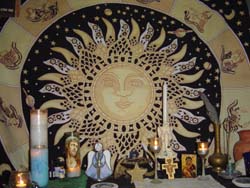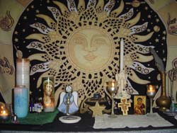 The Threefold Law: Any evil that one does will return three times over; so too with any good that one accomplishes. The Rede and the Law obviously motivate Witches/Wiccans to avoid doing evil. "Witches" in the Bible and the "Witches" within Wicca are, in fact, totally opposite in belief and practice. They are also unrelated to the Gothic Satanism hoax created by the Christian church in the late Middle Ages. Wiccans do not believe in Satan; their pantheons of deities do not include an all-evil supernatural being. They are unrelated to imaginary witchcraft of children's literature; Wiccans very definitely live in the real world, not an alternate universe. ![]() Judgment of others believes is very confusing for me and I tend not to do this for various reasons.. If some would say..hey you are christian and also pagan and wicca ? No you can not do that? It is controversial and hypocritical .. I look at them in the eye and say who are you to impose your believes on me! I do not impose mine on you or others.. I merly mention them.. Sorry if I am blunt but this is my nature... I also believe in reincarnation too .. so now what am I a buddist too... Please... I am searching for my inner being and found that faith and religion are two seperate entities and that have caused way too many wars over the years.. Your god is not my god so lets kill everyone! Absurb and all peoples over history this planet have been tortured by another group.. why... because of economics, religion and land? ![]() Why do people have to label each other? Labels are for those who want to see differences in others and if possibly similar traits or believes. We should learn from one another not to judge on mere words..but of their actions which should give them away! If I had to label myself with all my believes.. I would choose the word, ' Love and Unity' That is why I really love that symbol below. it lists many faiths but on the same symbol... WHATEVER WE ARE.. WE ARE ONE IN OUR GOD.. ![]() I also do not believe in heaven and hell as places per say but levels of consciousness.. Hell is on earth right now.. look around at the hatred, the greed, the meaness of the human race... " I want generation" or the Me generation... drought, locusts, famine war, the seals have been broken people.. Heaven is a state of grace reached when one has lifted their inner being higher than it has ever been before.. It could be from helping an older person, a co-worker, or even oneself with forgiviness and love.. I have been to heaven, and I came back.. here to help others.. heaven is within our souls if we only look deep enough.. We are not gods no we are mortal being with and infinite soul which lives on after our body/shell dies and withers and decays into the earth.. ![]() Heaven is multi-dimential... as is our trascendence from this eartly plane to our next spiritual level.. Too me... and this is just me.. heaven can be seen as a very beautiful golden staircase which contains many layers of wisdom, and also spiritual experiences.Each one of us are on different levels of this staircase and each of us take different approaches to get on this staircase. Faith and religions are part of this staircase but only in generic form.. aka Religion/faith.. No names or specific name but just the noun. I have been on my spirial staircase and I have also fallen off it too... and has taken me time to keep climbing up.. each level has so many new experiences and adventures for me to discover and from that discover is whom I am now.. ![]() From this source.. Wicca information We recognize that many Wiccans, Neopagans, and others regularly use the terms "Pagan" and "Paganism" to describe themselves. Everyone should be free to continue whatever definitions that they wish. However, the possibility of major confusion exists -- particularly if one is talking to a general audience. When addressing non-Wiccans or non-Neopagans, it is important that the term: ![]() Be carefully defined in advance, or that Its meaning is clearly understandable from the text's context. Otherwise, the speaker or writer will be referring to one group of people, while the listeners or readers will assume that other groups are being referred to. ![]()